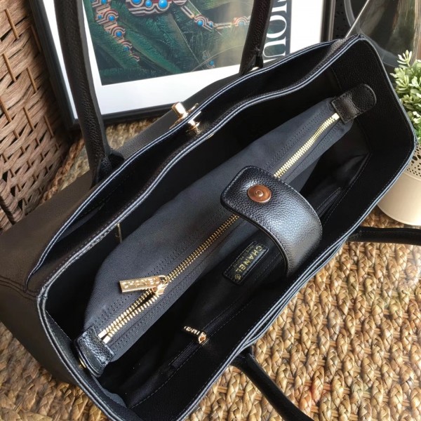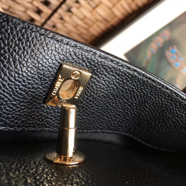 chanel cerf tote bag in caviar leather black with gold hardware AQ01764