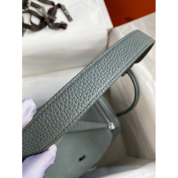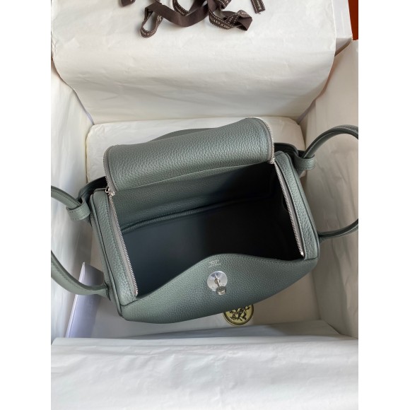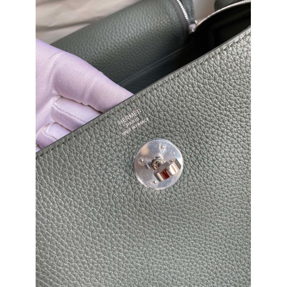 Hermes Lindy 26 Handmade Bag In Vert Amande Clemence Leather