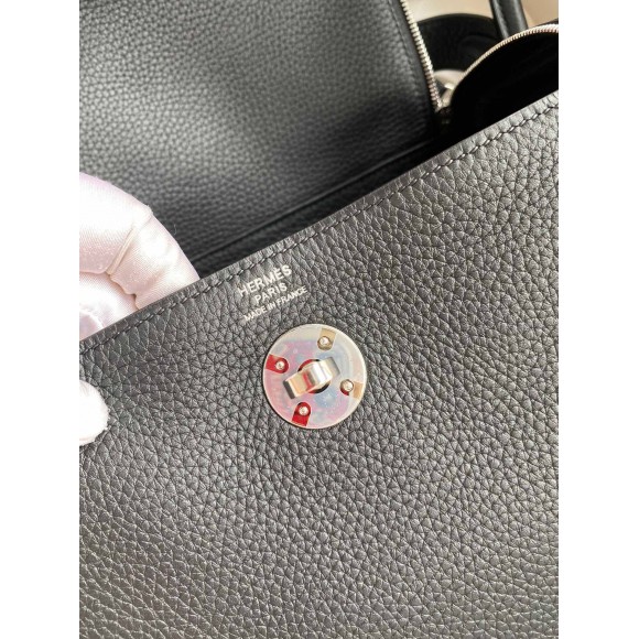 Hermes Lindy 26 Handmade Bag In Black Clemence Leather