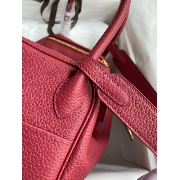 Hermes Lindy 26 Handmade Bag In Ruby Clemence Leather