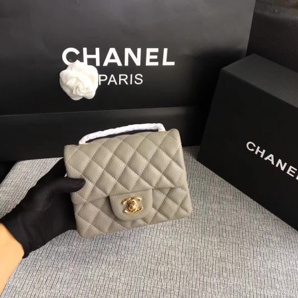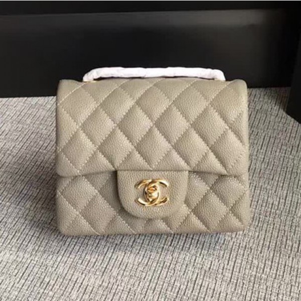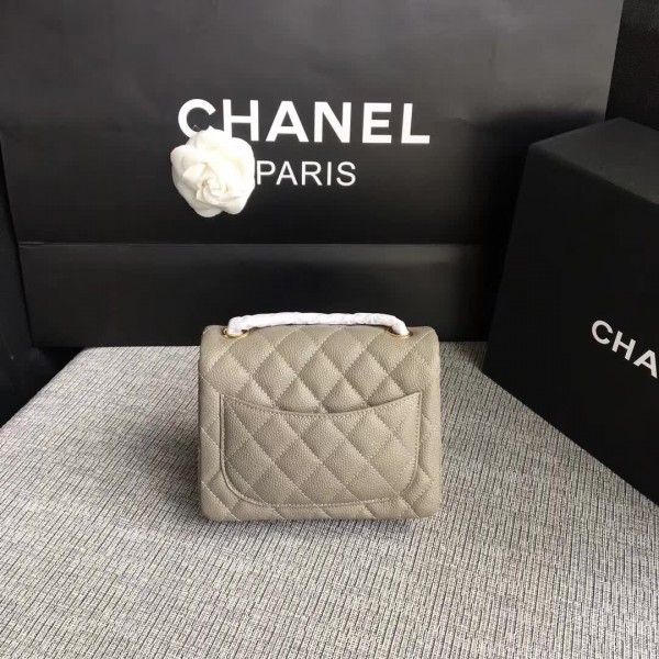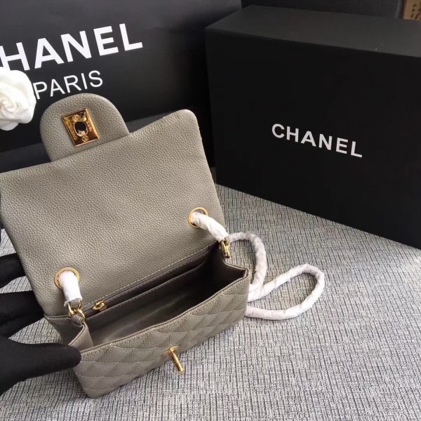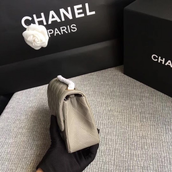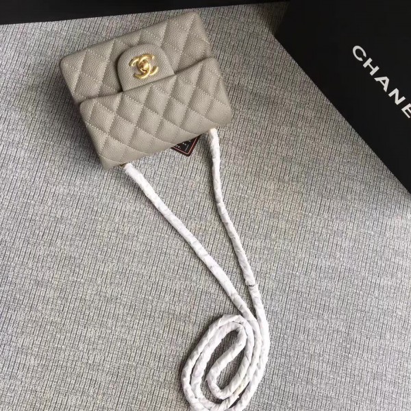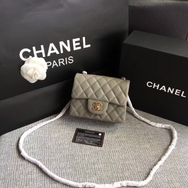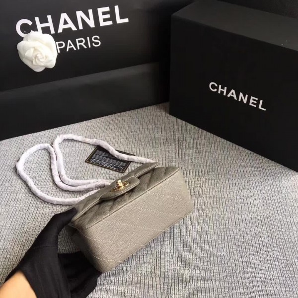Chanel Classic Flap Mini Bag A1115 in Caviar Leather Grey with Golden Hardware AQ00675