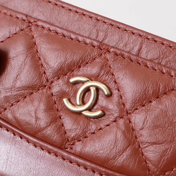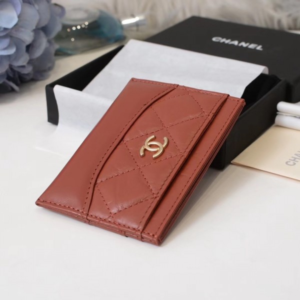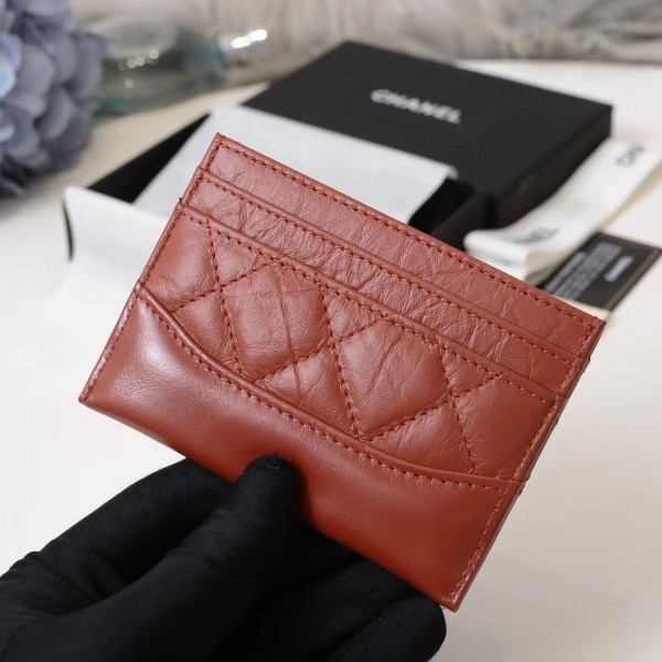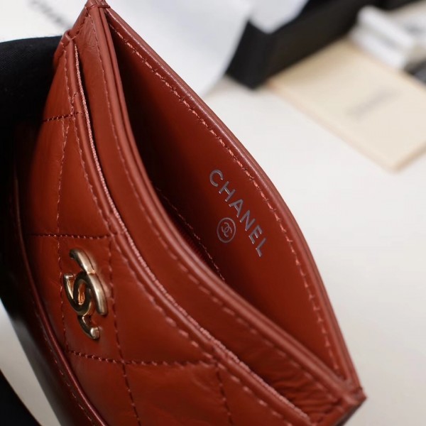 Chanel Aged Calfskin Gabrielle Card Holder A84386 Brick Red AQ02887