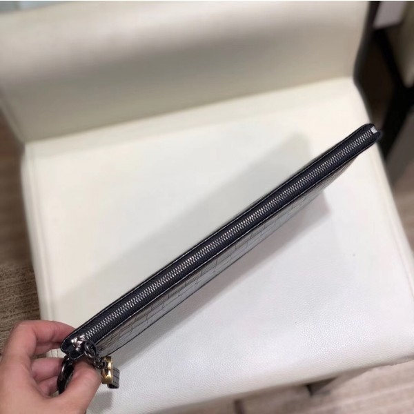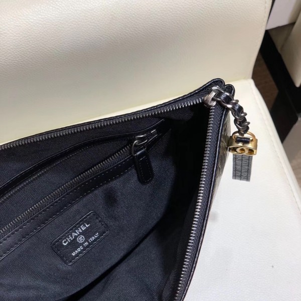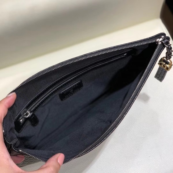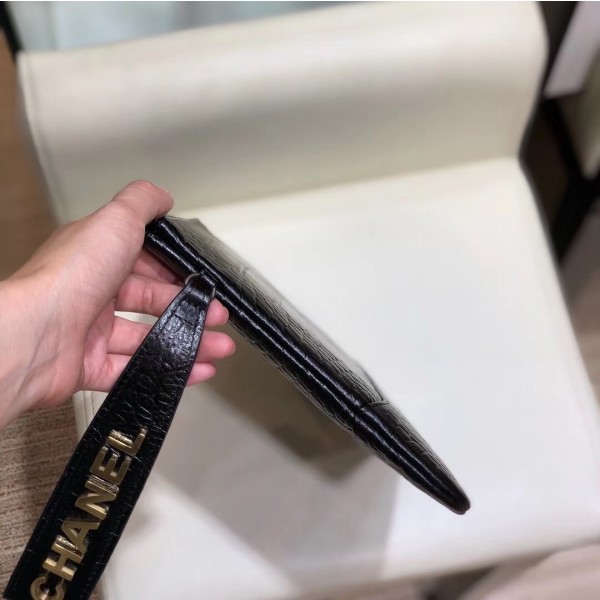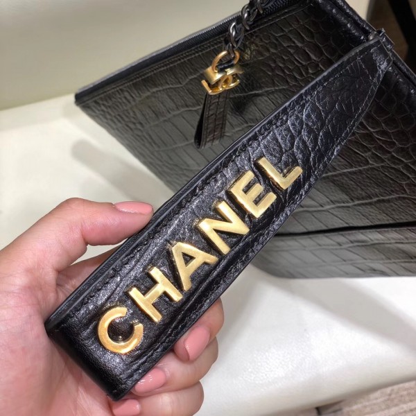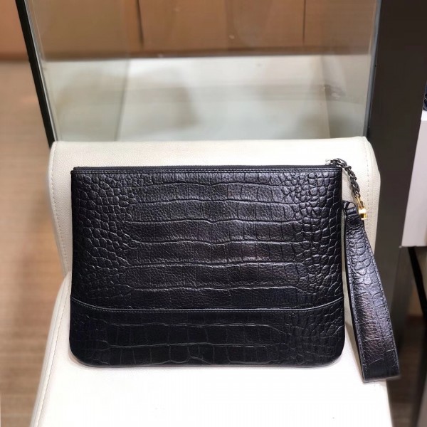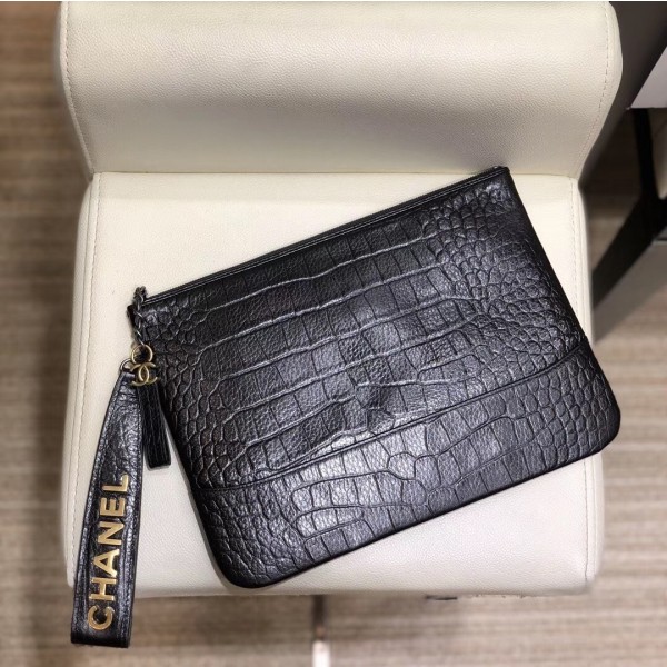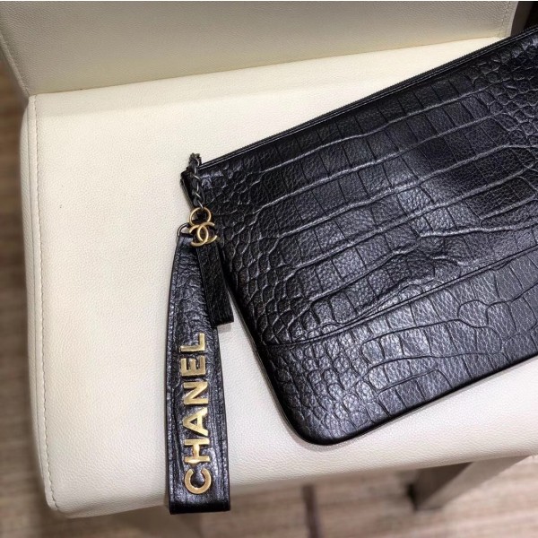 Chanel Crocodile Embossed Calfskin Gabrielle Pouch Clutch Small Bag A84287 Black 2019 AQ03577