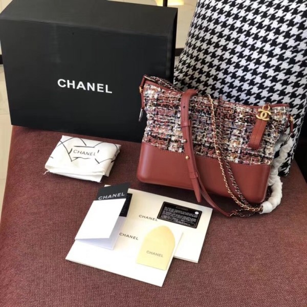 Chanel Tweed/Calfskin Gabrielle Medium Hobo Bag A93824 Brick Red 2018 AQ01415