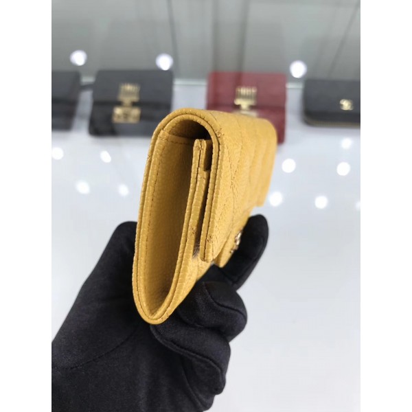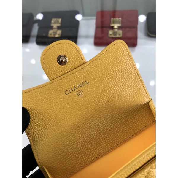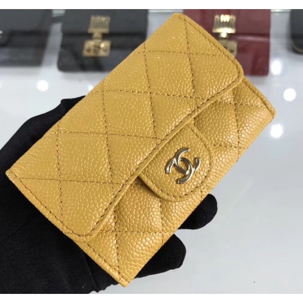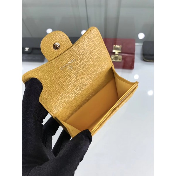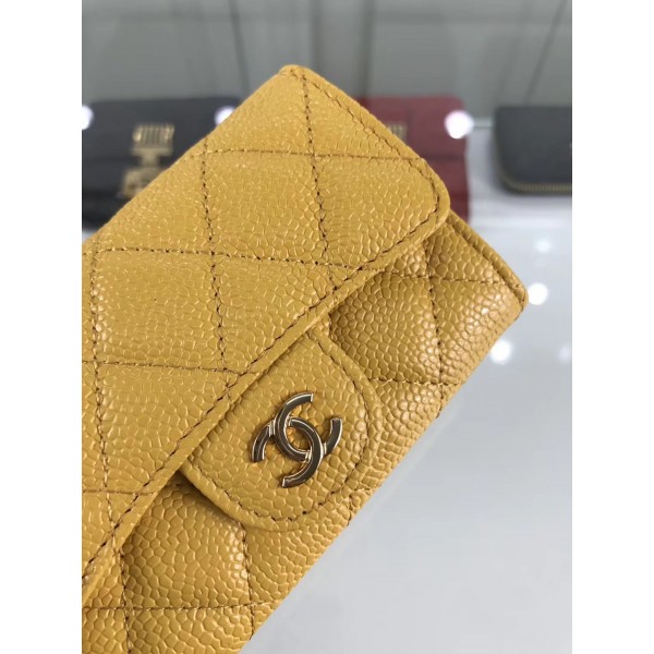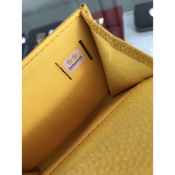 Chanel Grained Leather Classic Flap Card Holder A80799 Yellow/Gold AQ01368