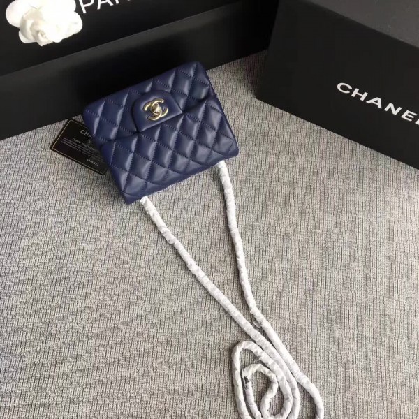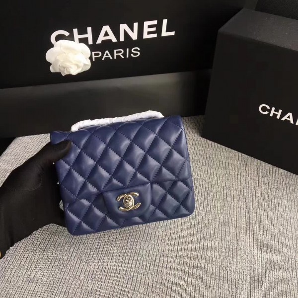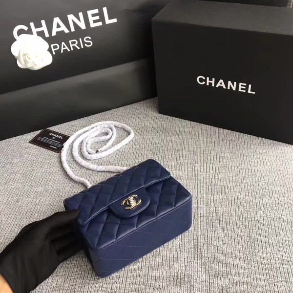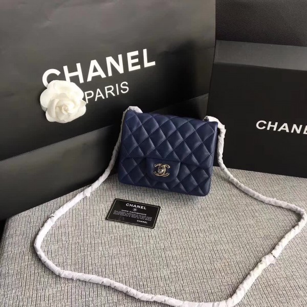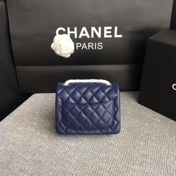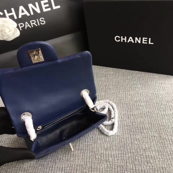 Chanel Classic Flap Mini Bag A1115 in Lambskin Leather Sapphire with Silver Hardware AQ01843