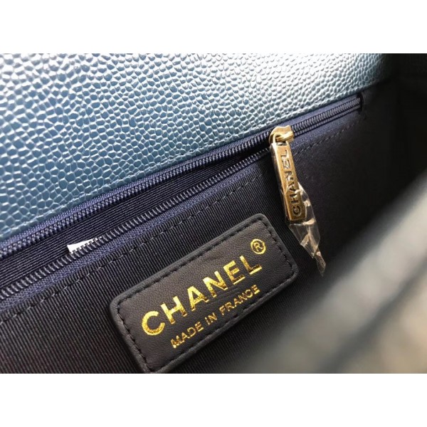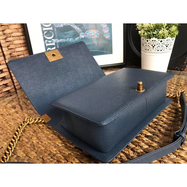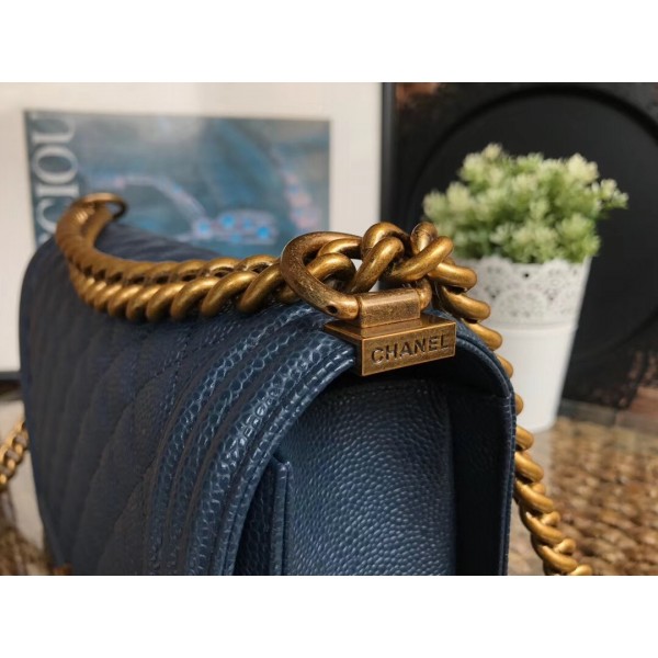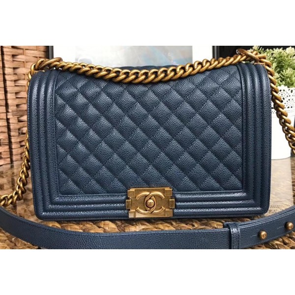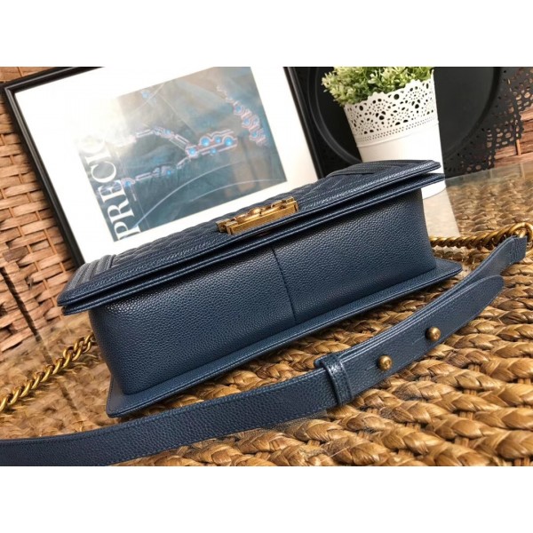 Chanel Caviar Leather Boy Flap Medium Bag Navy Blue/Gold AQ02356