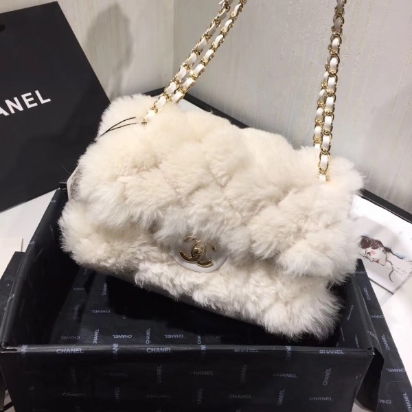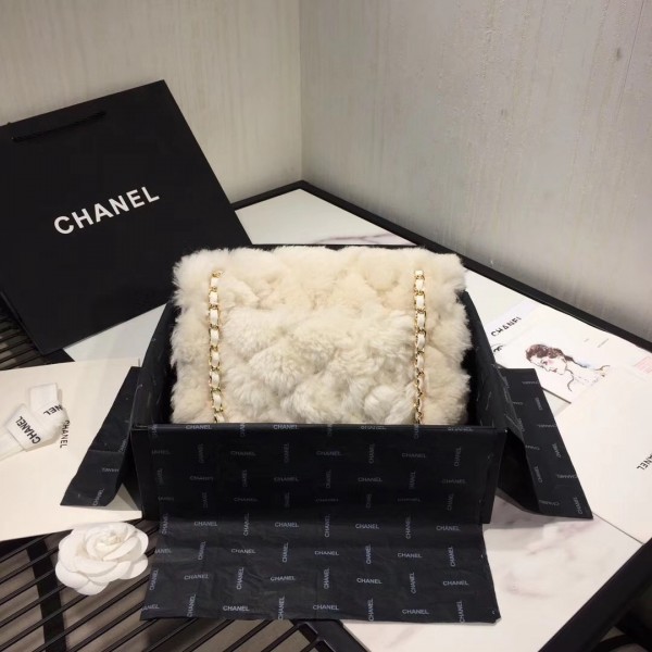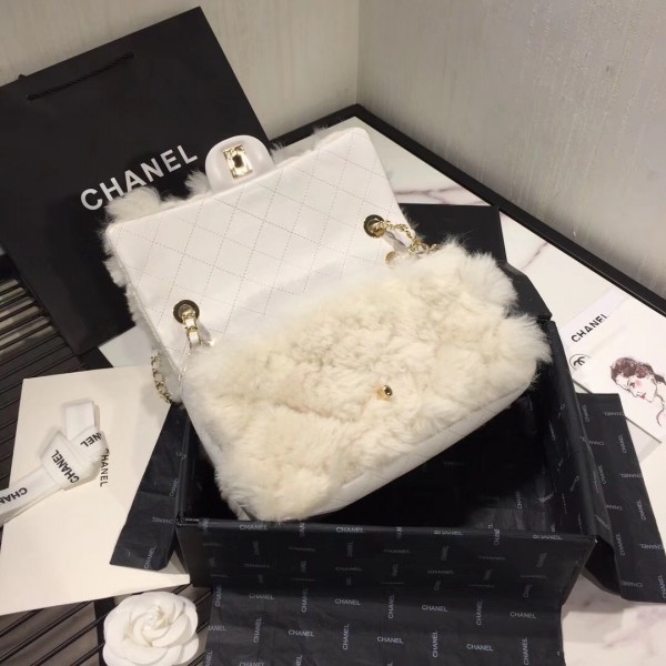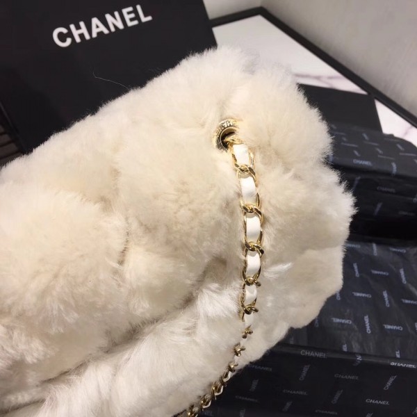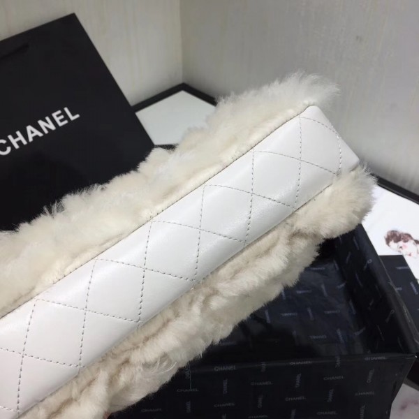 Chanel Shearling Lambskin Medium Flap Bag AS1063 White 2019 Collection AQ01050