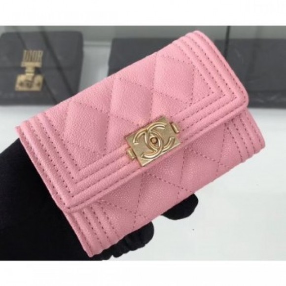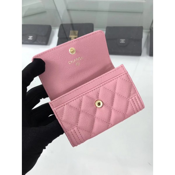 Chanel Grained Calfskin Boy Flap Card Holder A80603 Pink/Gold AQ02128