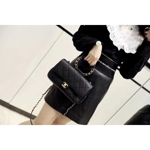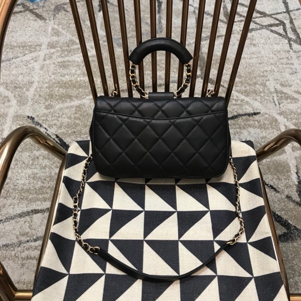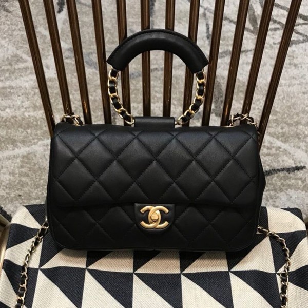 Chanel Quilted Lambskin Medium Flap Bag with Ring Handle AS1358 Black 2020 Collection AQ01584