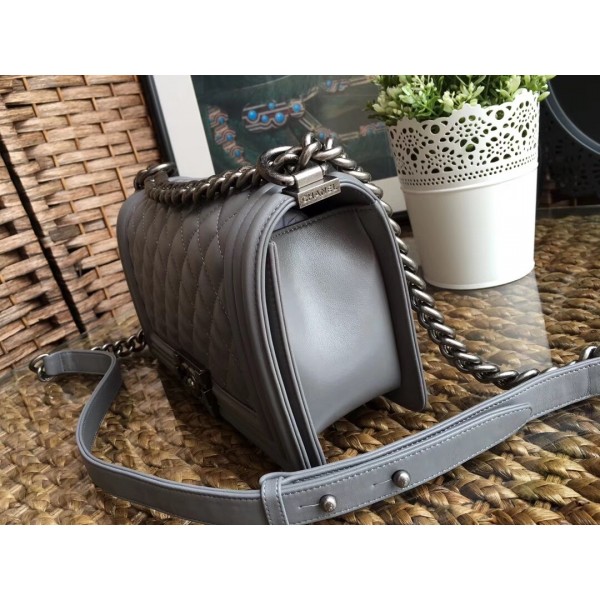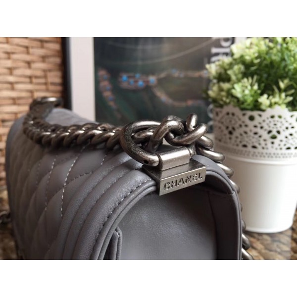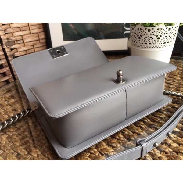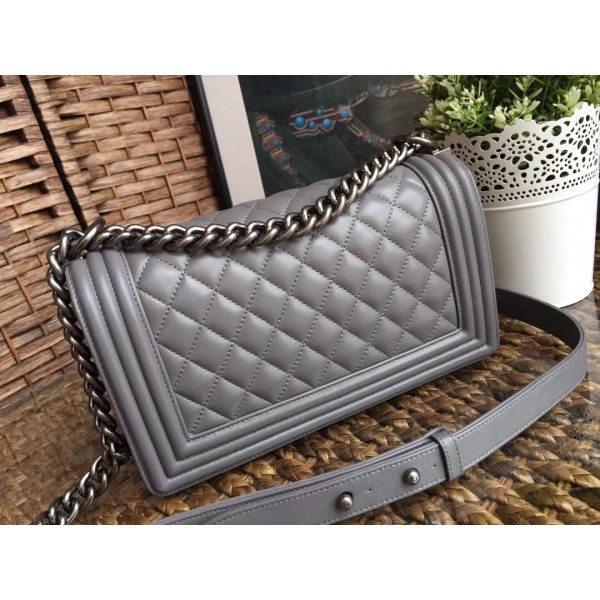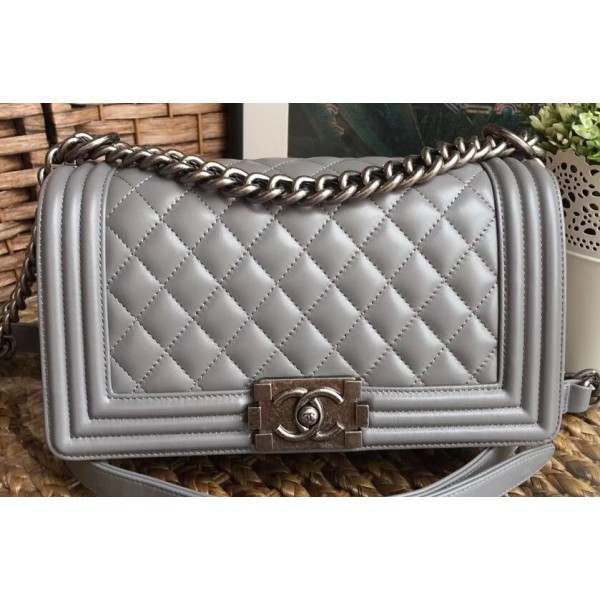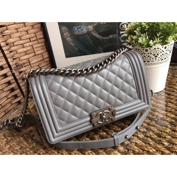 Chanel Lambskin Boy Flap Medium Bag Gray/Silver AQ04076