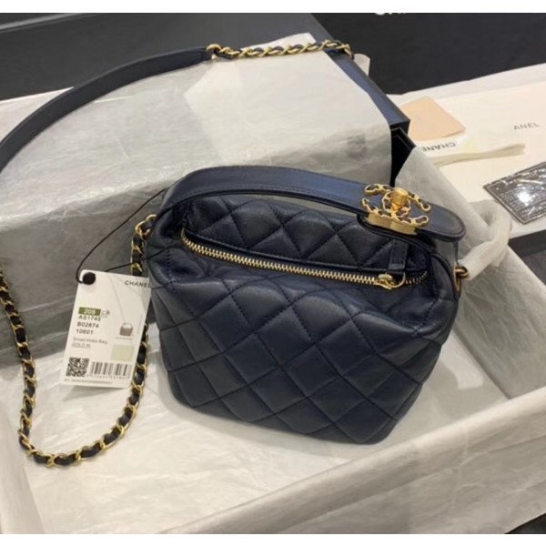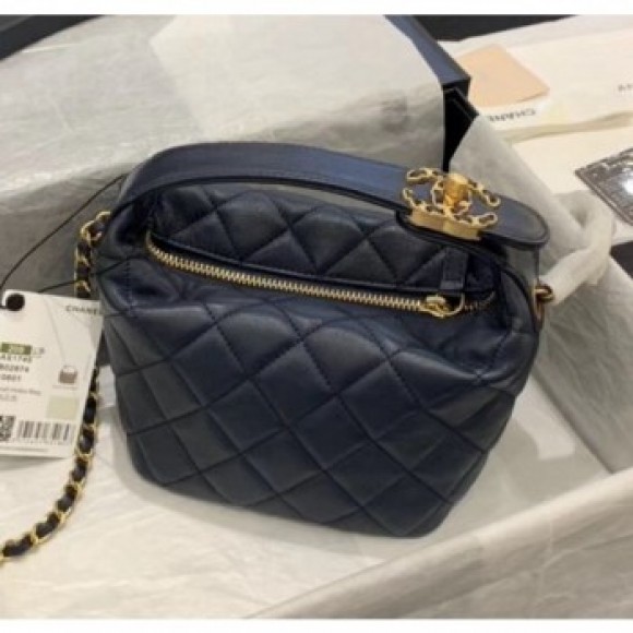 Chanel Quilted Leather Small Hobo Bag With Gold-Tone Metal AS1745 Navy Blue 2020 Collection AQ02158