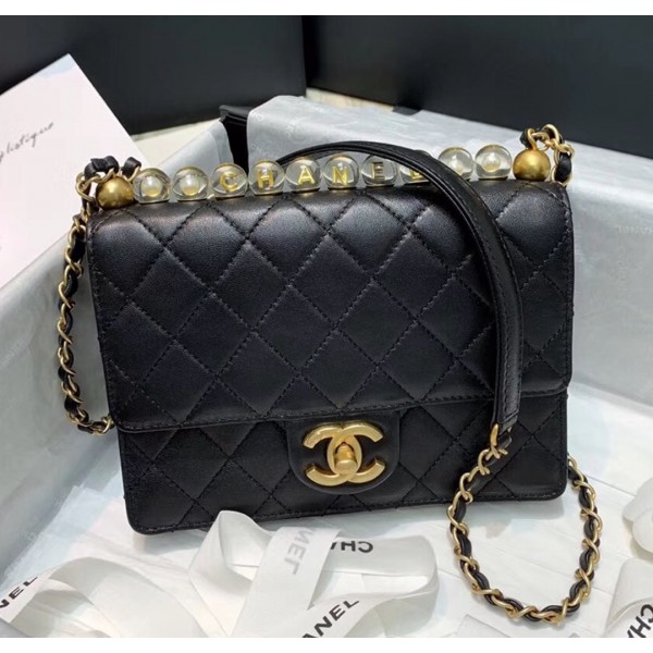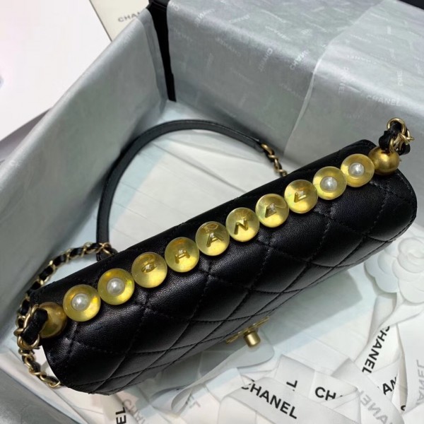 Chanel Acrylic Beads Goatskin Small Falp Bag AS0585 Black/Gold 2020 Collection AQ02536