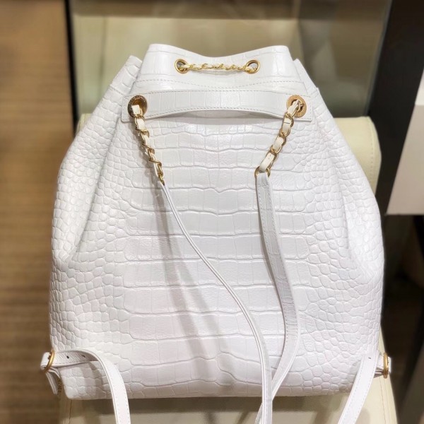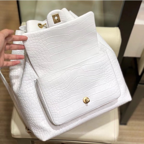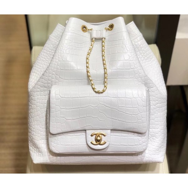 Chanel Crocodile Embossed Calfskin Large Backpack Bag AS0800 White 2019 AQ01788
