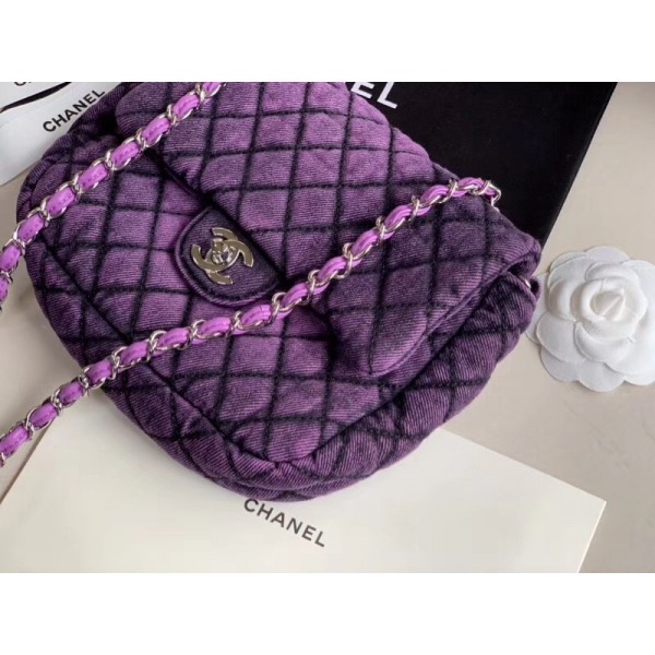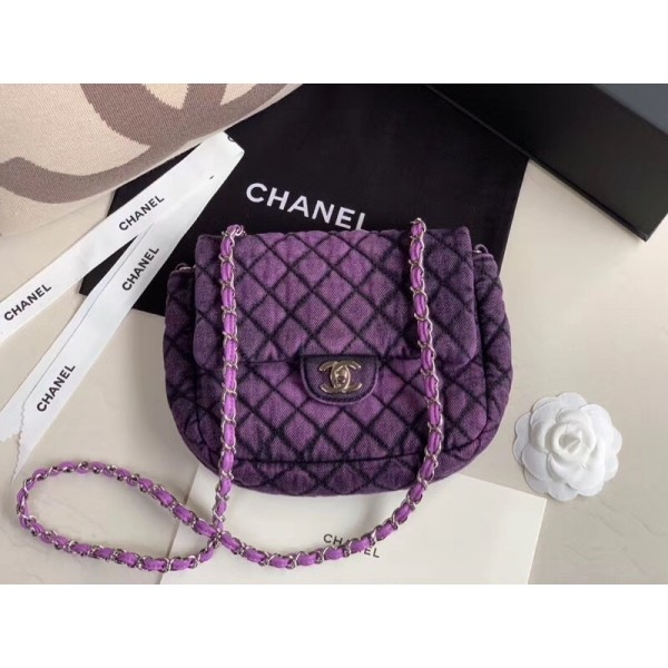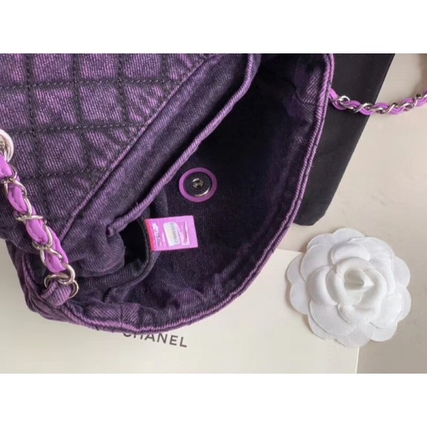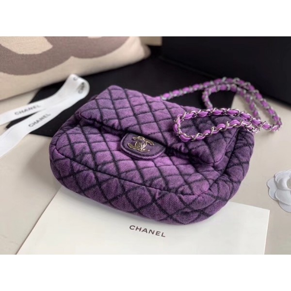Chanel Quilted Denim Small Flap Bag Purple 2020 Collection AQ03695