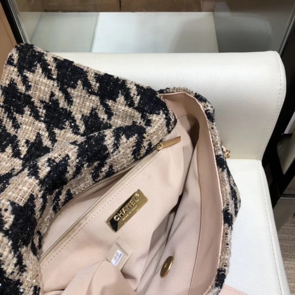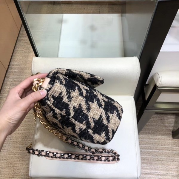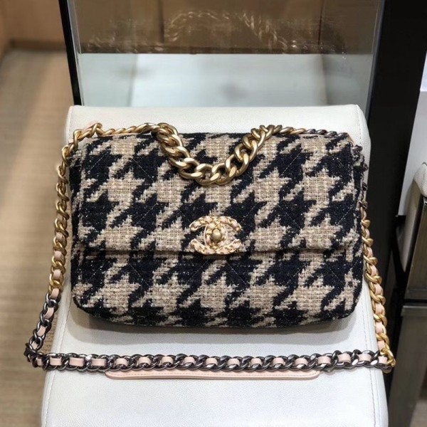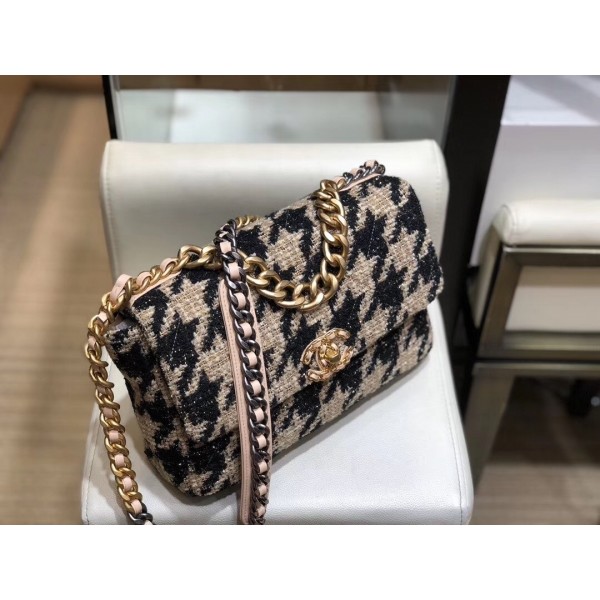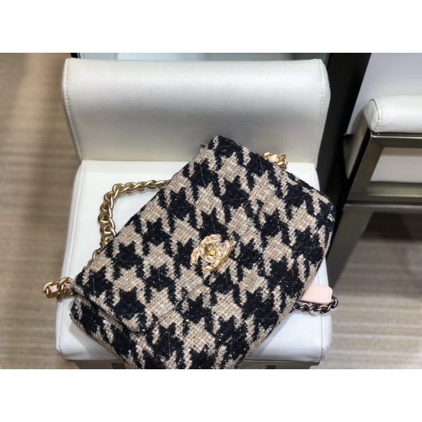 Chanel 19 Houndstooth Wool Tweed Large Flap Bag AS1161 Beige/Black 2019 Collection AQ02460