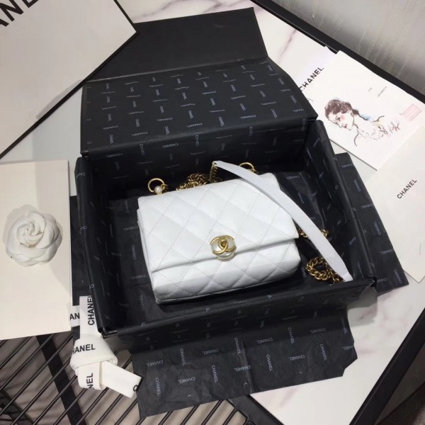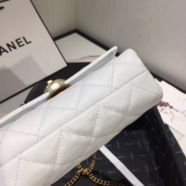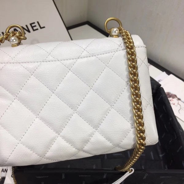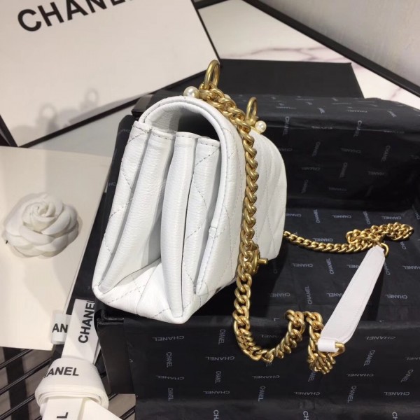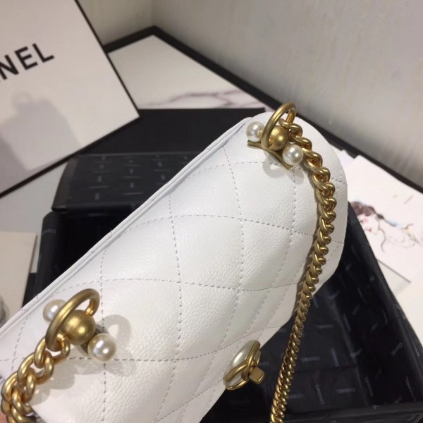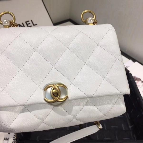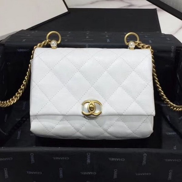 Chanel Quilted Leather Pearl Trim Small Flap Bag AS1170 White 2019 Collection AQ02726