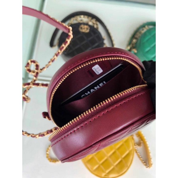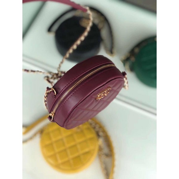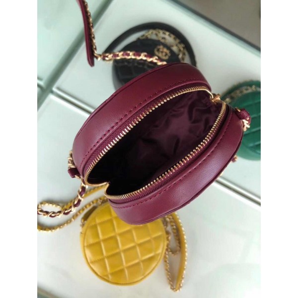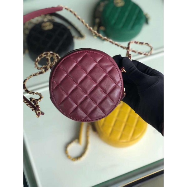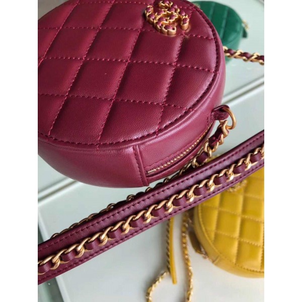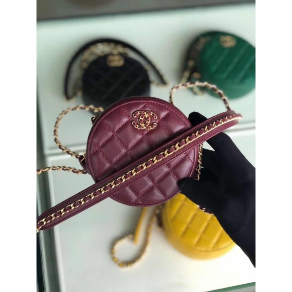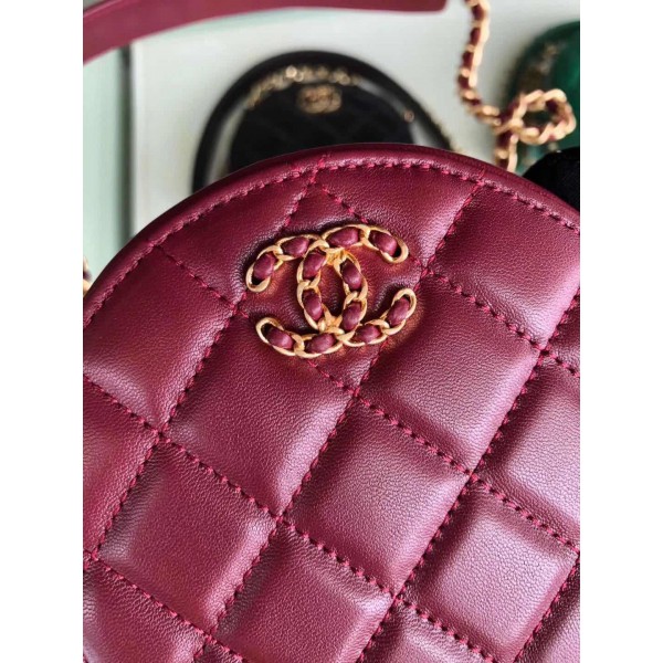 Chanel Quilted Lambskin Chain CC Round Clutch with Chain AP0725 Burgundy 2019 Collection AQ02758