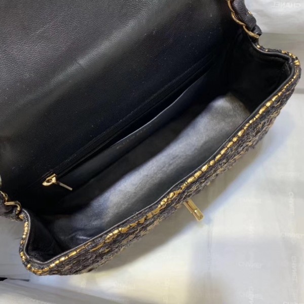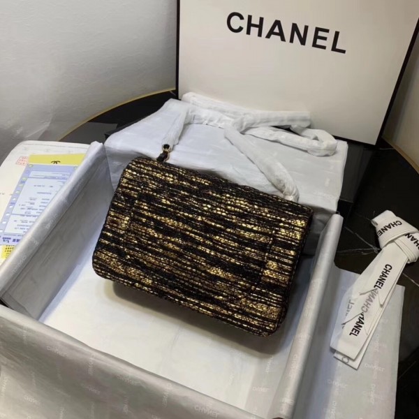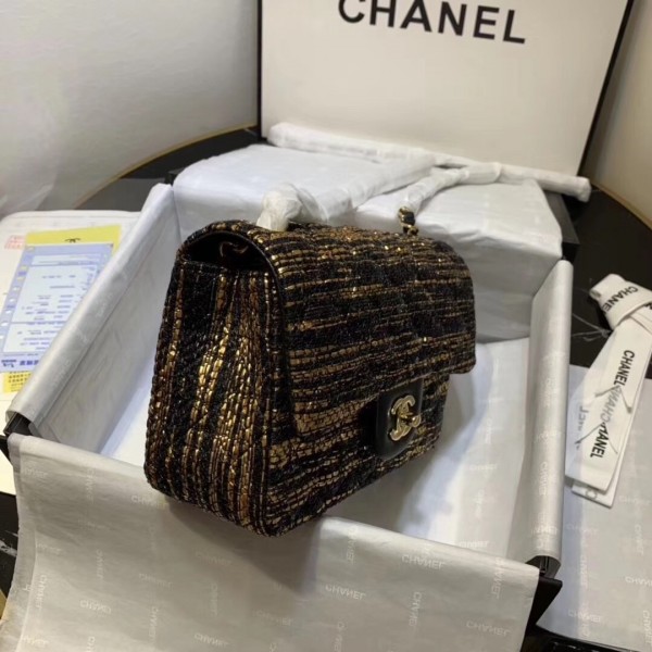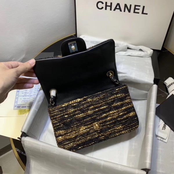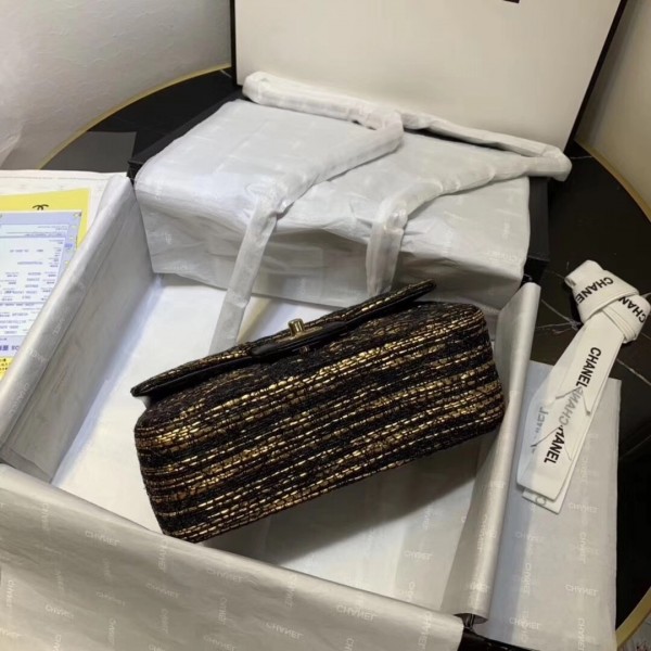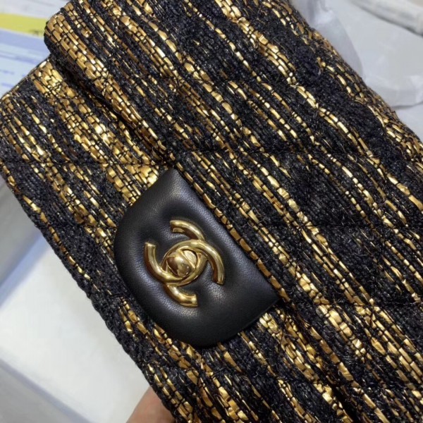 Chanel Tweed Small Classic Flap Bag A01112 Gold/Black 2019 Collection AQ02901
