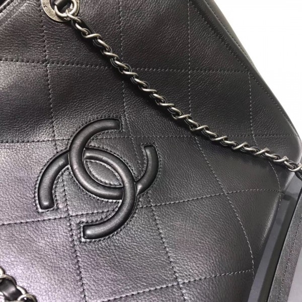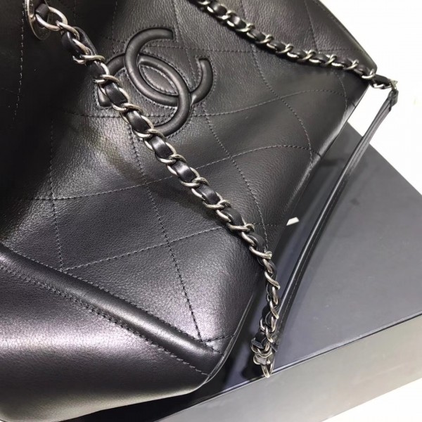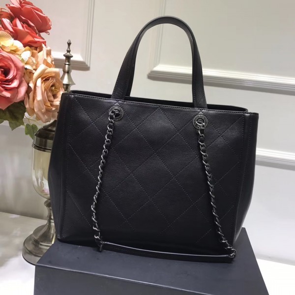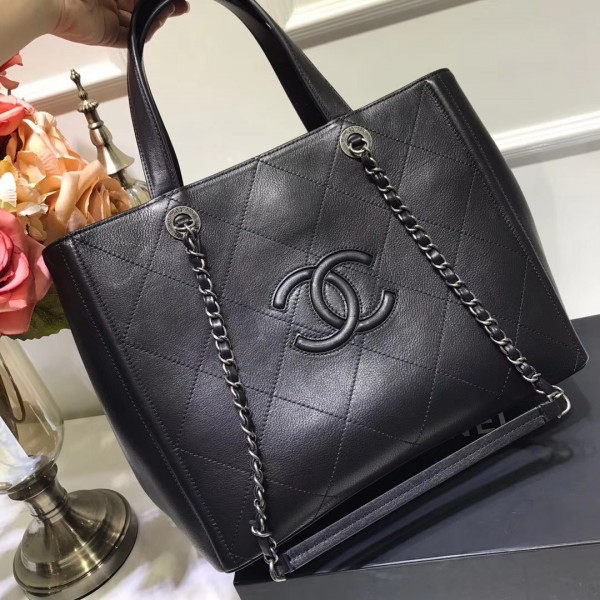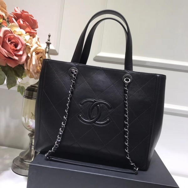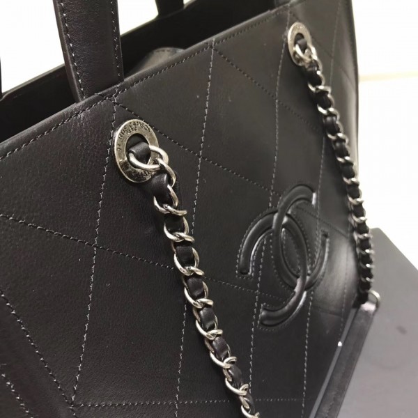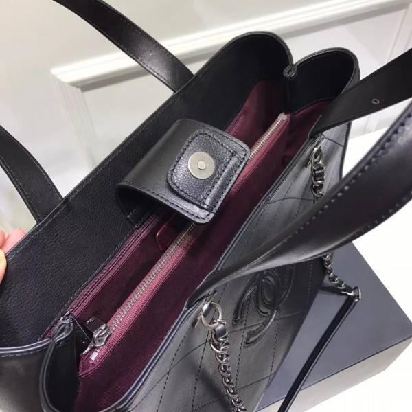 Chanel Quilting CC Logo Shopping Tote Bag Black/Silver 2019 AQ03459