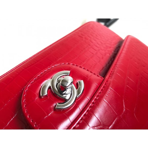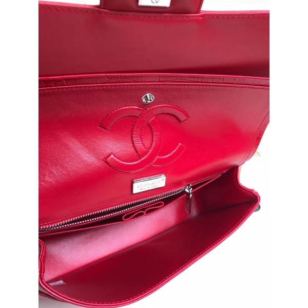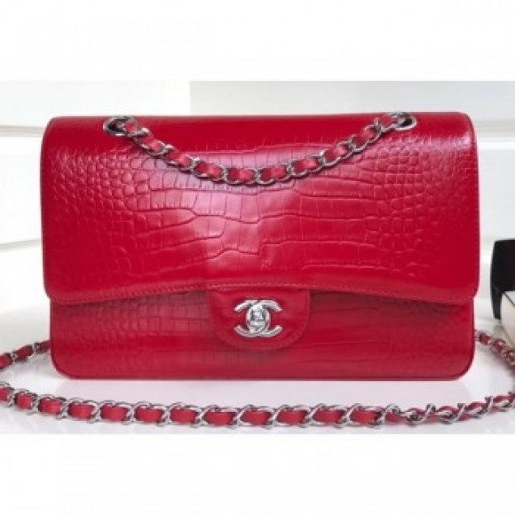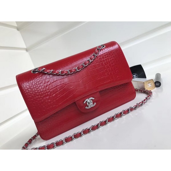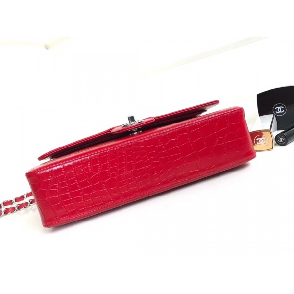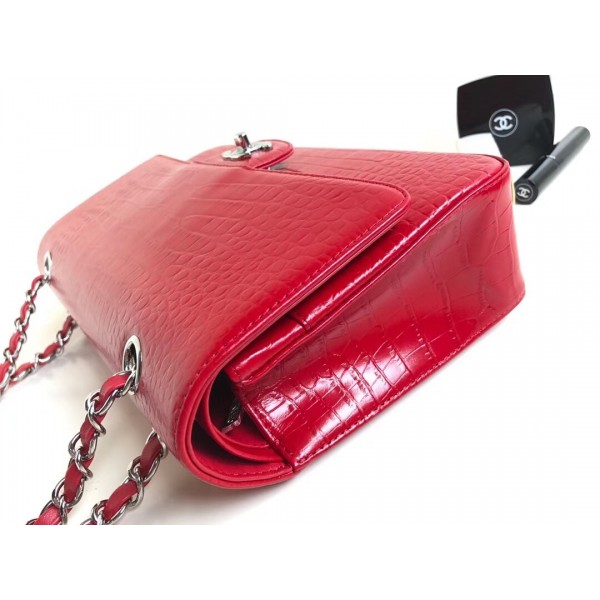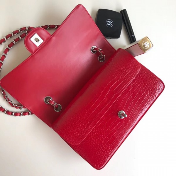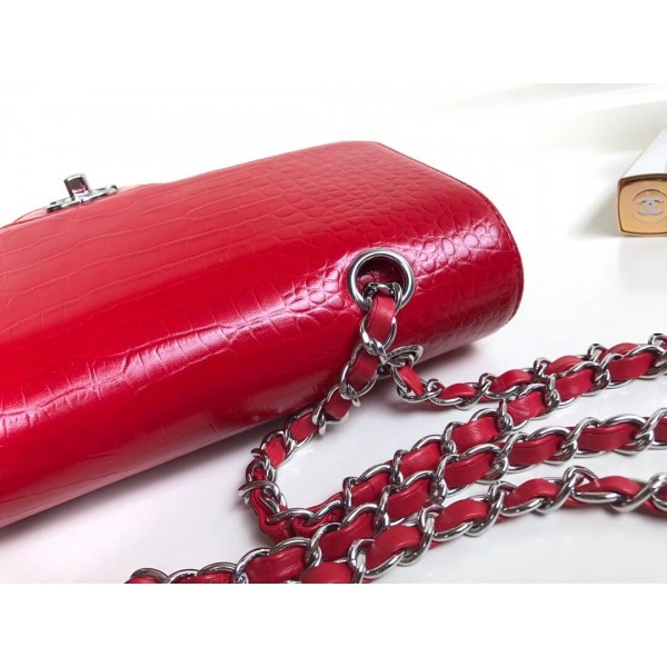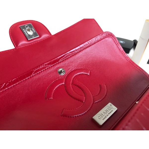 Chanel Croco Pattern Classic Flap Medium Bag Red AQ03518