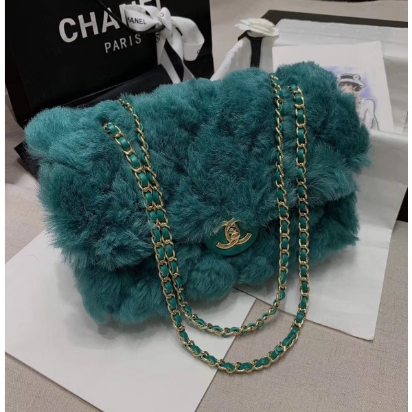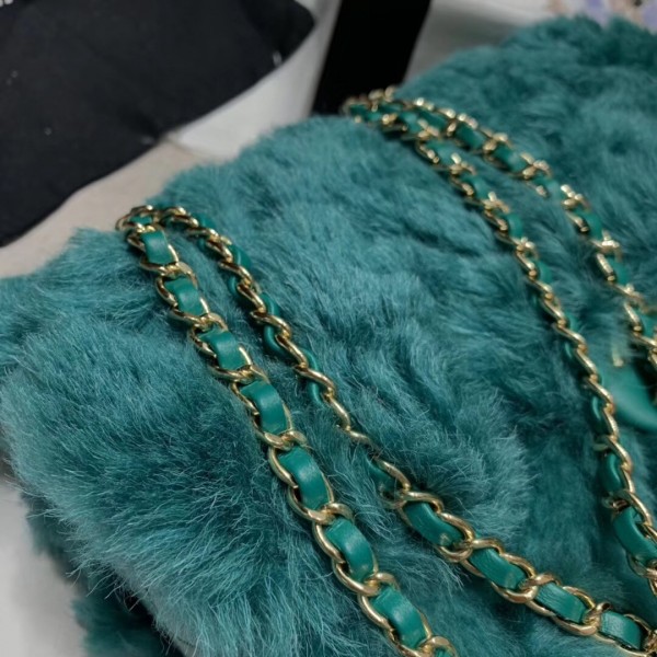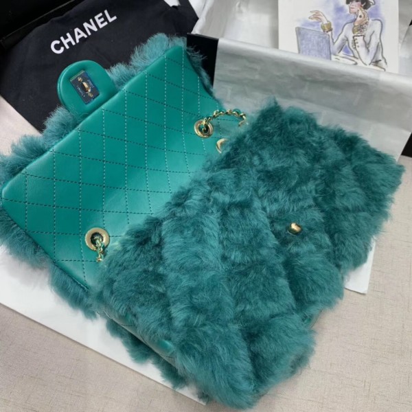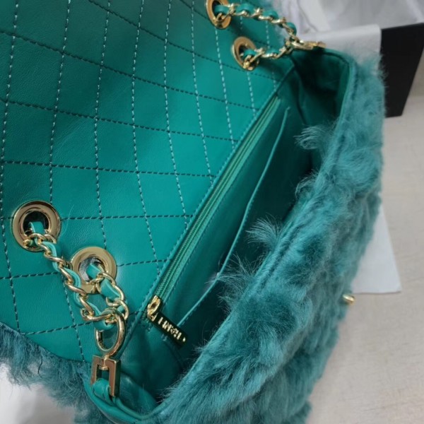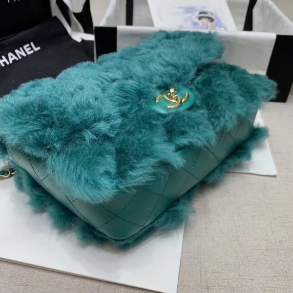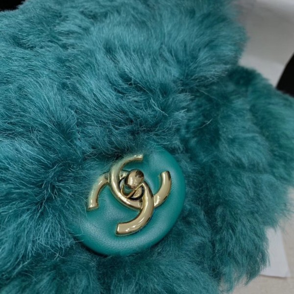 Chanel Shearling Lambskin Medium Flap Bag AS1063 Green 2019 Collection AQ04261