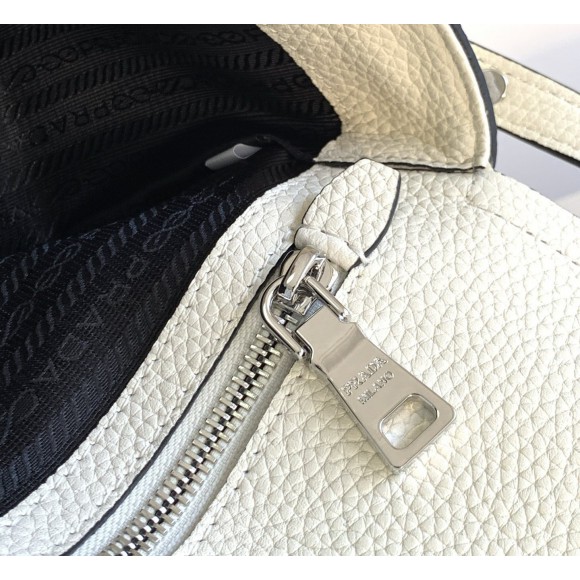 Prada Flap Shoulder Bag in White Grained Leather