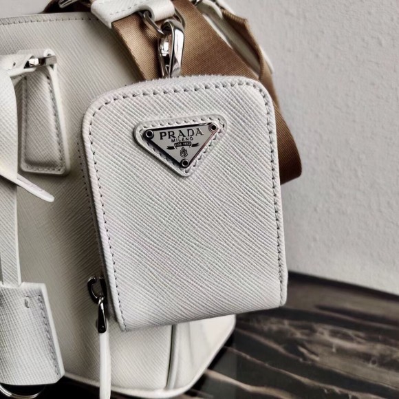 - Prada logo-print nylon lining with two pockets, including one with zipper