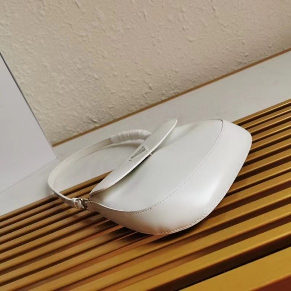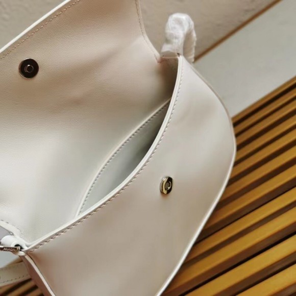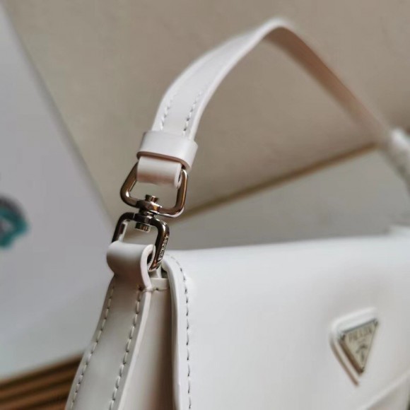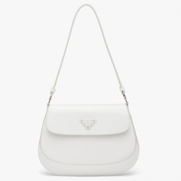 Prada Cleo Flap Bag In White Brushed Leather