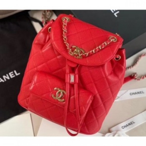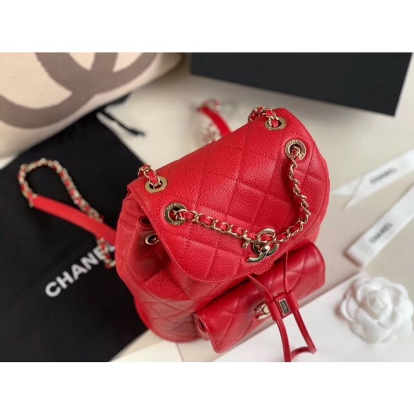 Chanel Caviar Leather Vintage Duma Backpack Bag AS1371 Red 2020 AQ04067