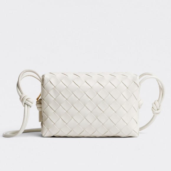 Bottega Veneta Loop Mini Bag In White Intrecciato Lambskin