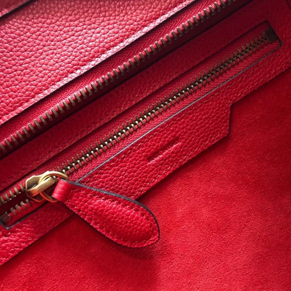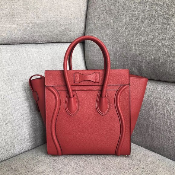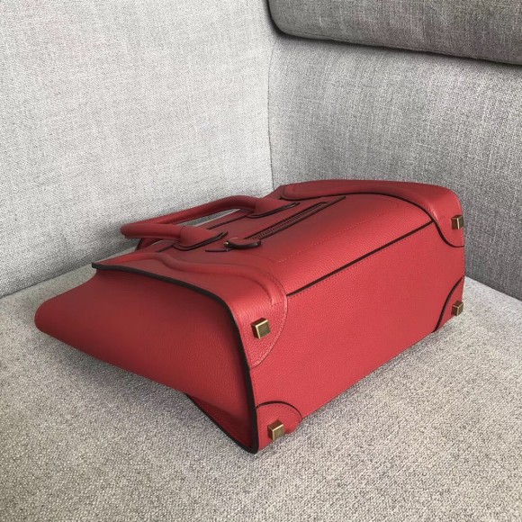 Celine Micro Luggage Tote Bag In Red Drummed Calfskin