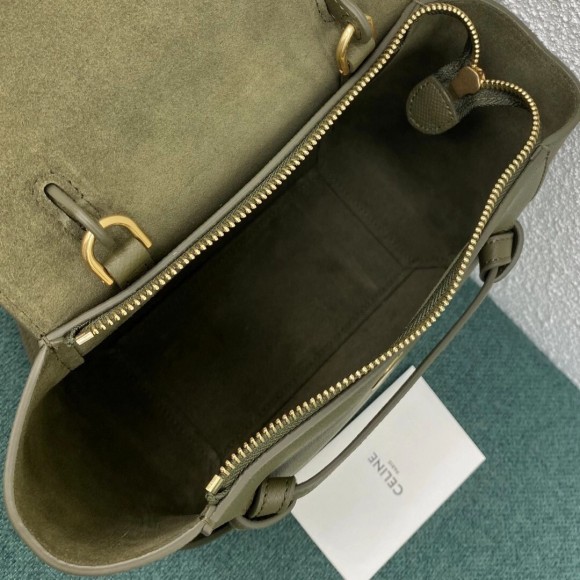 Celine Belt Nano Bag In Army Green Grained Calfskin