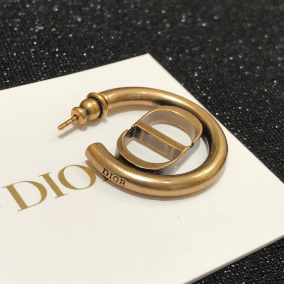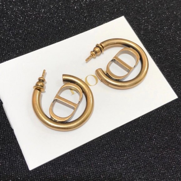 Dior 30 Montaigne Hoop Earrings In Antique Gold-Finish Metal