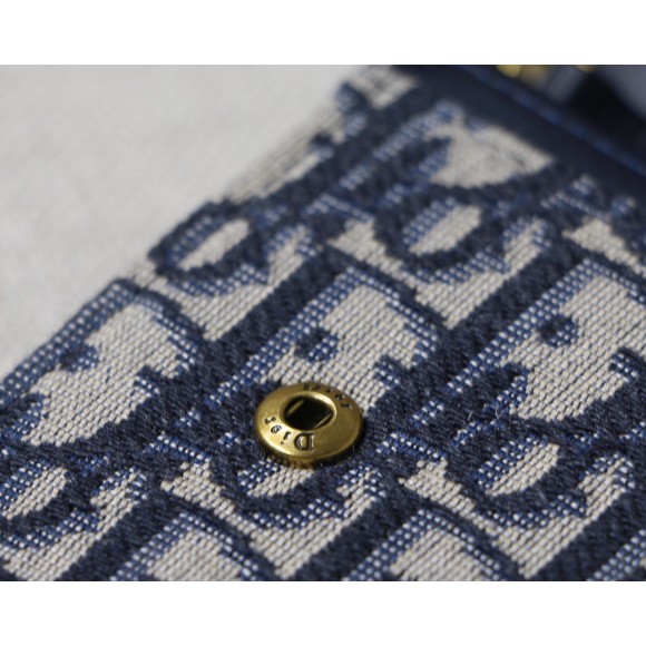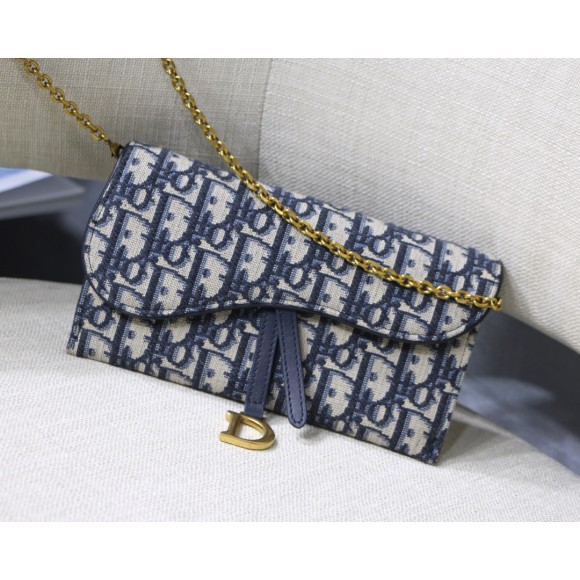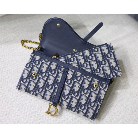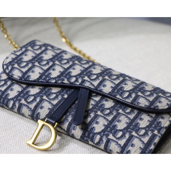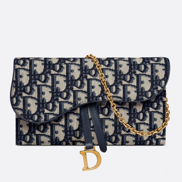 Dior Saddle Chain Wallet In Blue Oblique Jacquard