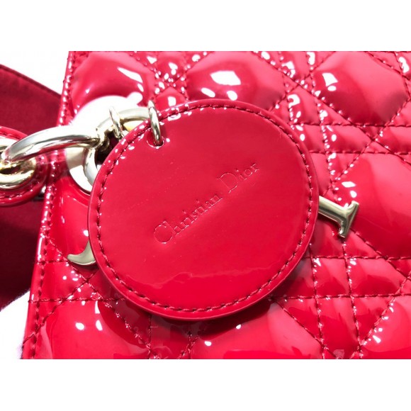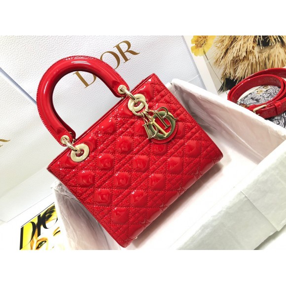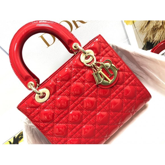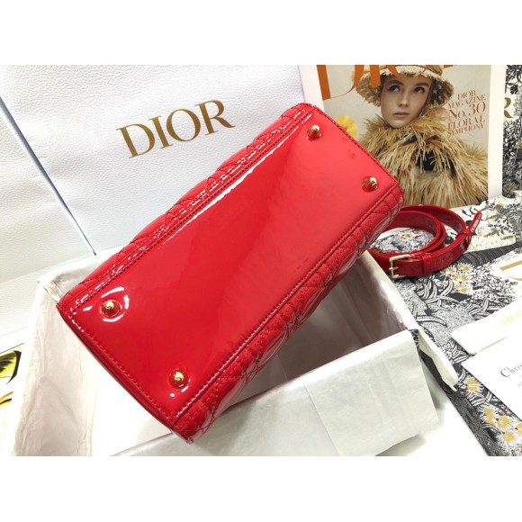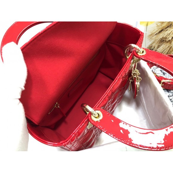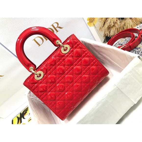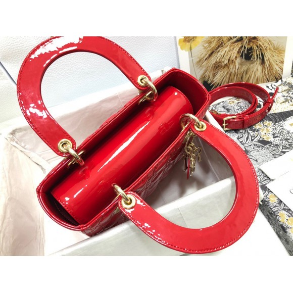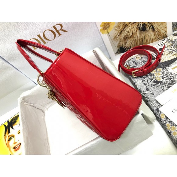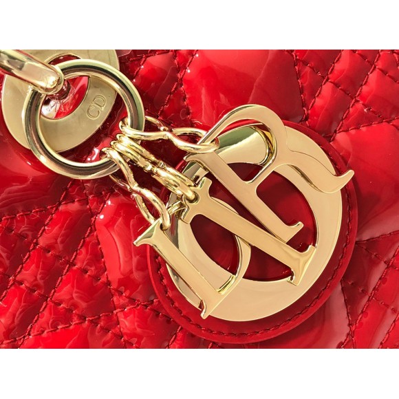 Dior Small Lady Dior Bag In Red Patent Cannage Calfskin