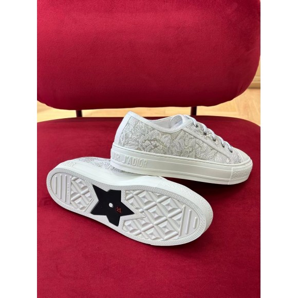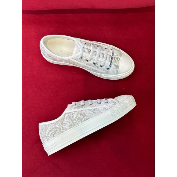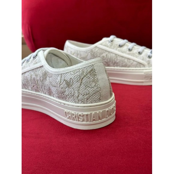 Dior Walk'n'Dior Sneakers In Gold-Tone Jardin d'Hiver Embroidered Cotton