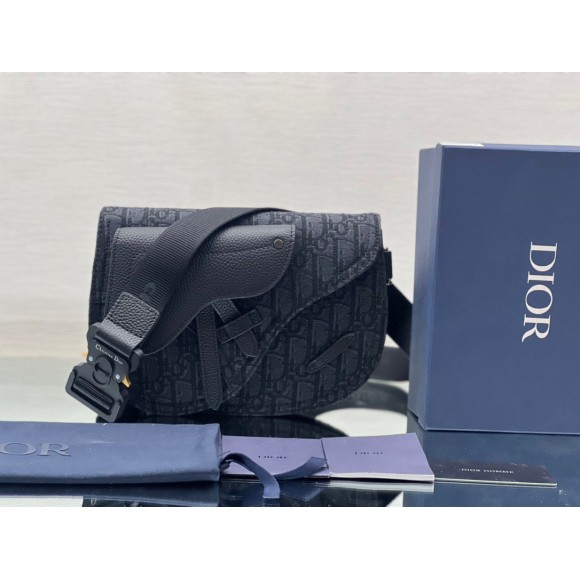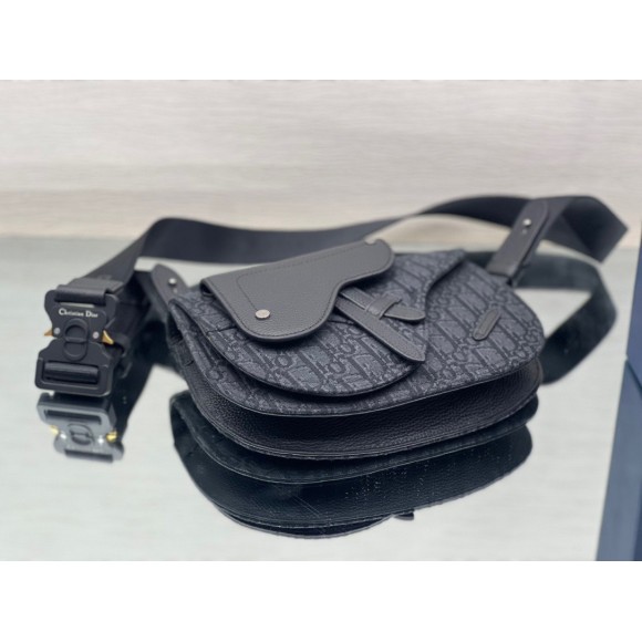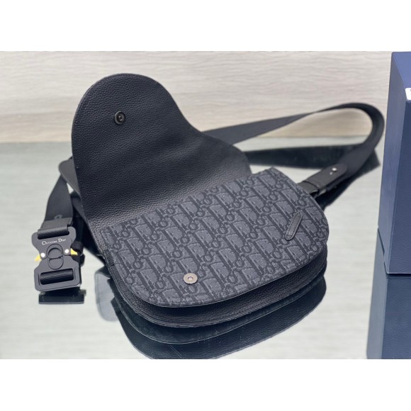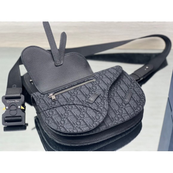 Dior Men's Saddle Pouch in Black Dior Oblique Jacquard
