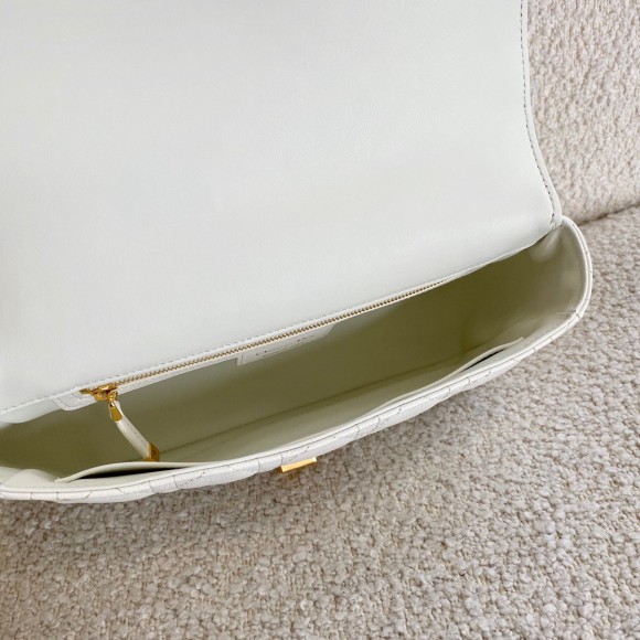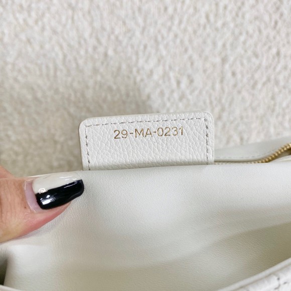 - Adjustable, removable 'CD' chain link strap with 'Christian Dior' military-inspired buckle