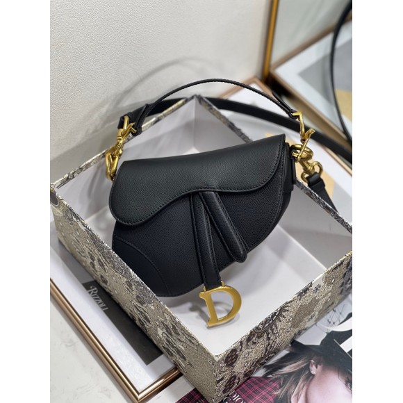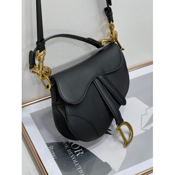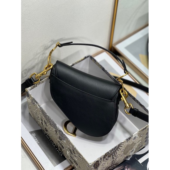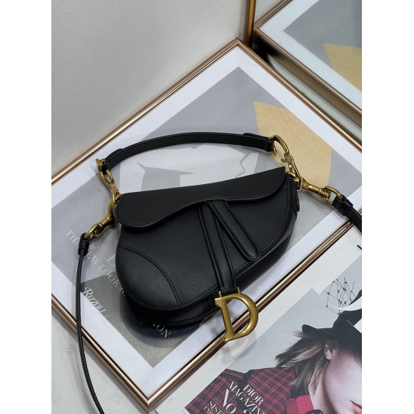 Dior Mini Saddle Bag with Strap in Black Grained Calfskin