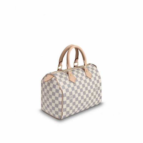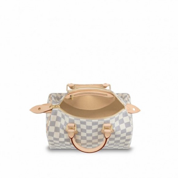Crafted from supple Damier Azur canvas, the Speedy 25 is an elegant, compact handbag, the ideal companion for city life. Launched in 1930 as the “Express” and inspired by that era’s rapid transit, today’s updated Speedy remains a timeless House icon, with its singular silhouette, rolled leather handles and engraved signature padlock.