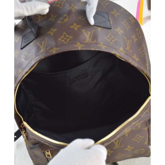 The Palm Springs PM backpack gives a fresh twist to a utilitarian staple, transforming it into an on-trend city bag. A must-have accessory for sporty urban nomads, this roomy model is fashioned from iconic Monogram canvas with soft leather trim and gold-tone hardware. The quilted straps are foam-backed for a comfortable carry.