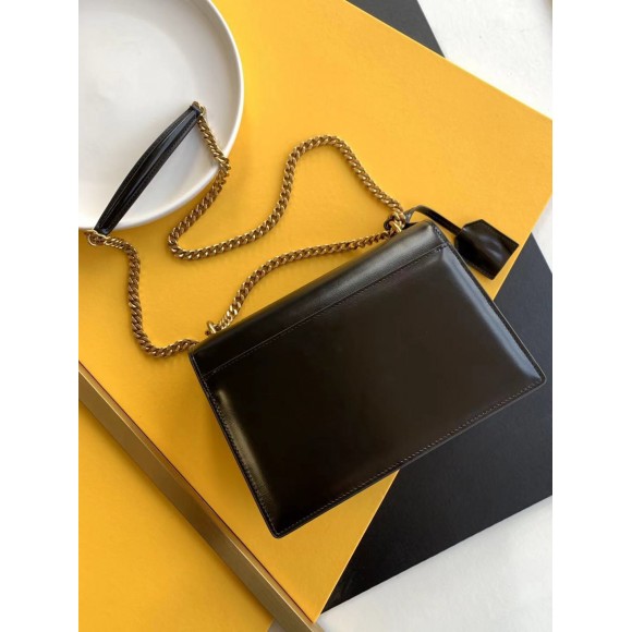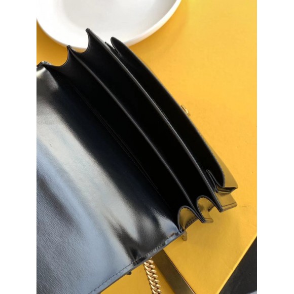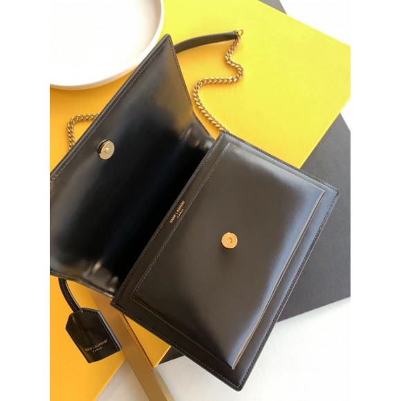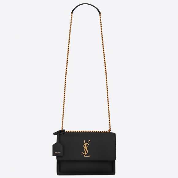 Saint Laurent Sunset Medium Chain Bag In Black Calfskin