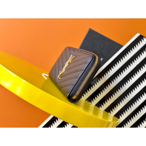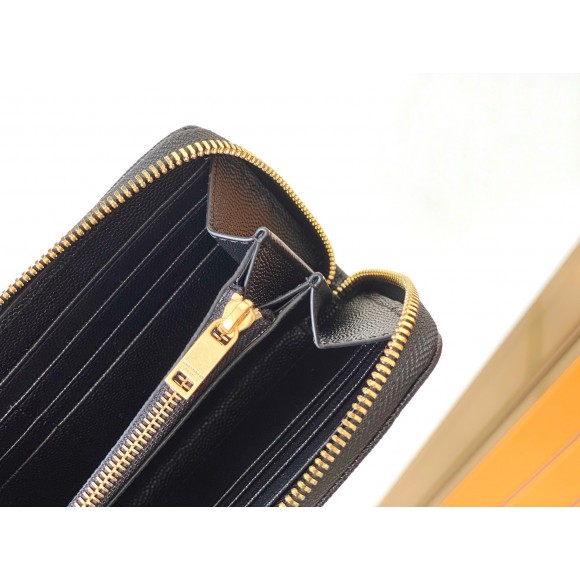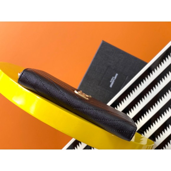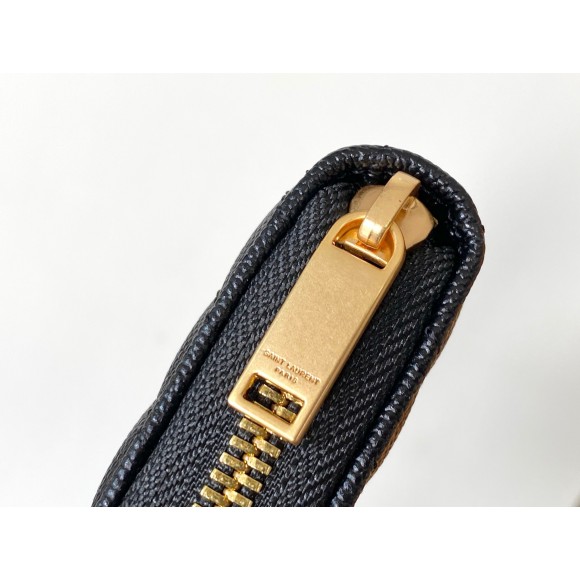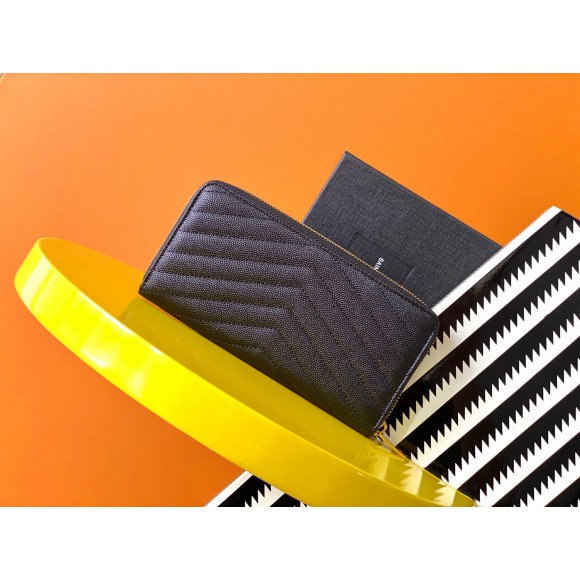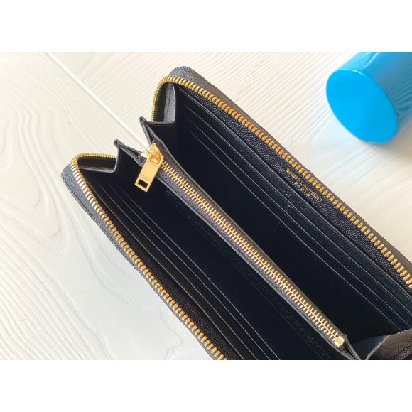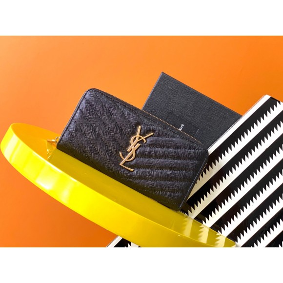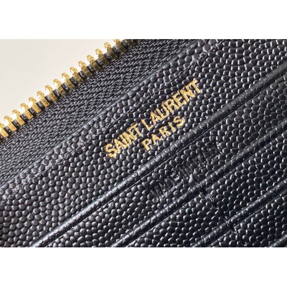 Saint Laurent Cassandre Zip Around Wallet in Black Matelasse Leather
