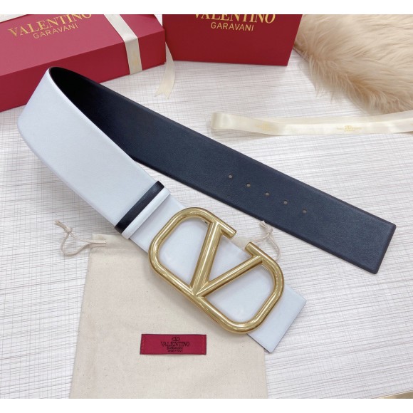 Valentino VLogo Reversible Belt 70mm in White and Black Calfskin